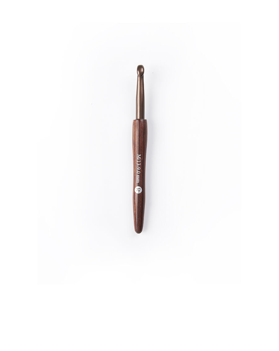 Manufactured from FSC-certified laminated birchwood, Rowan crochet hooks are beautifully crafted to ensure the smoothest handling whilst crocheting. Available in a variety of sizes from 2 mm up to 10mm, the hooks are fashioned in a beautiful bronze colour with a birchwood handle. The Rowan logo and mm/US needle sizes are printed in silver on the handle.