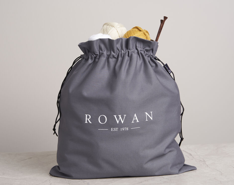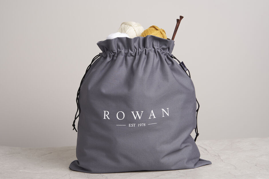 Created in conjunction with della Q, this Drawstring Project Bag is perfect for storing your latest cast-on wherever you are. Large enough to hold a garment, yarn, needles and notions this stylish bag comes in a beautiful charcoal colour with the Rowan logo printed in white on the front. The project bag measures approximately W37cm x H39cm and is made from 100% cotton and hand sewn with care.