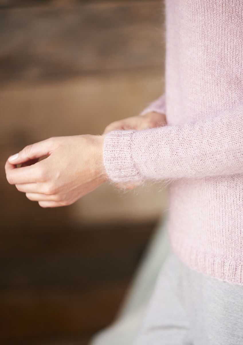 This stocking stitch sweater from Quail Studio is simply elegant. Kidsilk Haze and Fine Lace are worked together to create a beautifully soft, delicate fabric and the classic crew neck and ribbed hems make this a key wardrobe essential.