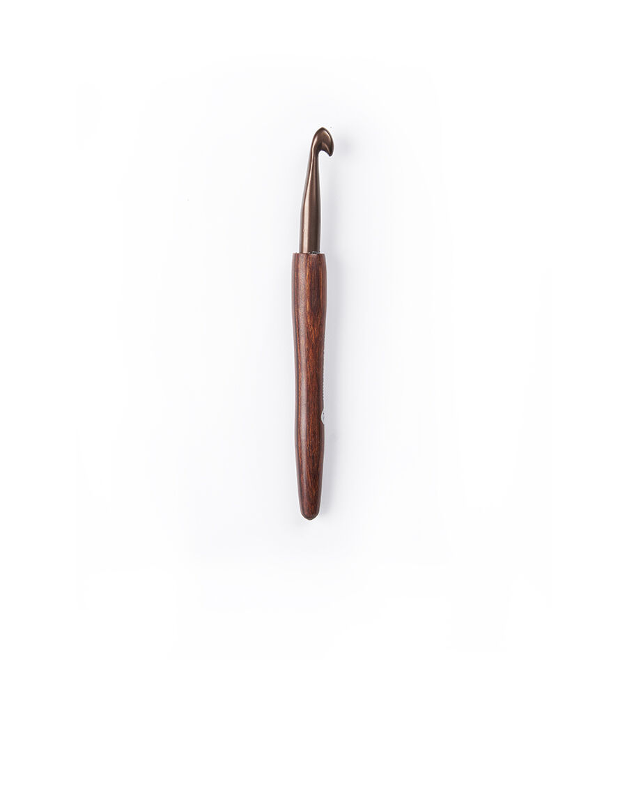 Manufactured from FSC-certified laminated birchwood, Rowan crochet hooks are beautifully crafted to ensure the smoothest handling whilst crocheting. Available in a variety of sizes from 2 mm up to 10mm, the hooks are fashioned in a beautiful bronze colour with a birchwood handle. The Rowan logo and mm/US needle sizes are printed in silver on the handle.